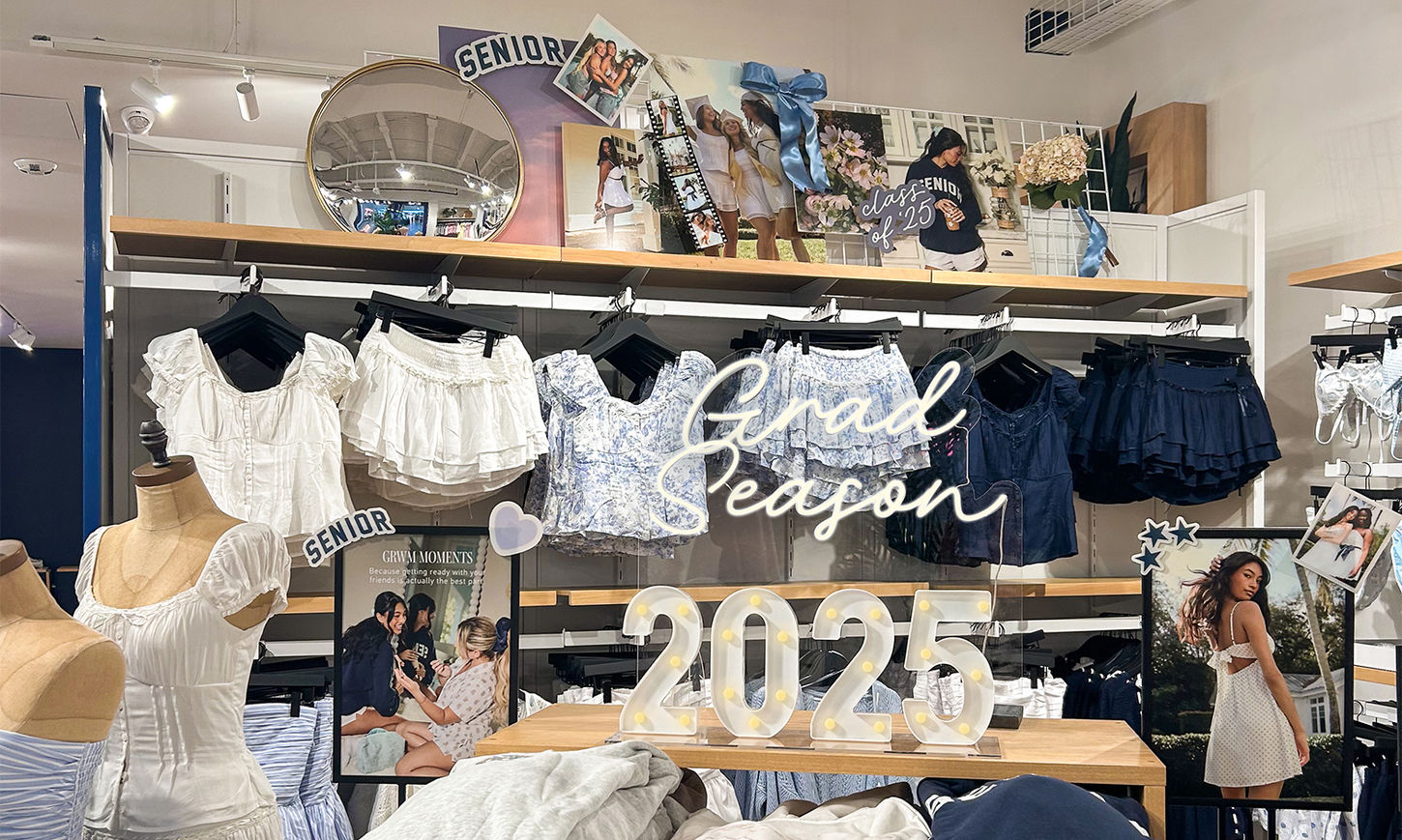 What started as a moodboard became one of the most rewarding projects I’ve worked on at Hollister. I concepted the Grad Shop experience from the ground up with our Art Director and Creative Director. We thought through everything from customer behavior to photography placement, signage design, mockups, and logistics of execution with our vendor. We weren’t just making a display. We were creating her moment, and that intention showed up in every detail from the small stickers and bows to the flower bouquets and light-up signs.